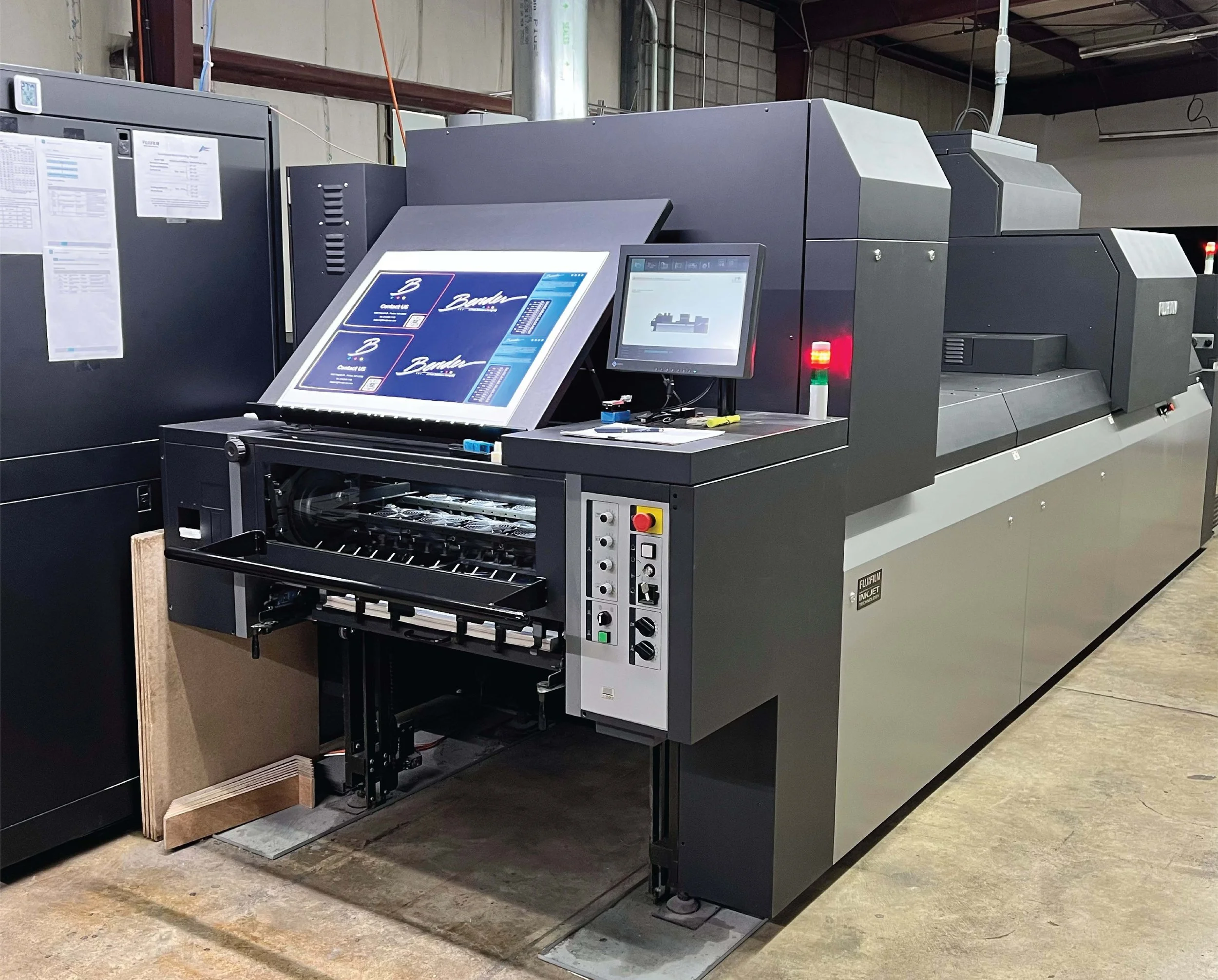 The JPress is a digital press with an offset press quality. It is capable of running jobs on a 23”x 29” sheet with exceptional color accuracy and color range on coated, uncoated, and packaging board.